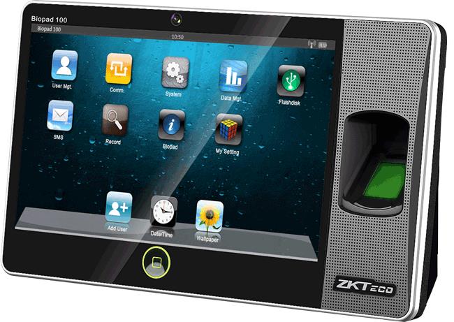 дисциплинарных отчетов и табеля отработанного сотрудниками времени. Модуль ПО Учет рабочего времени позволяет автоматически построить табель отработанного сотрудниками времени на основе полученных от контроллера регистрации данных. На лицевой панели контроллера расположен цветной ЖК-дисплей, отображающий время прихода/ухода сотрудников, сотрудник видит, какое время прихода/ухода попадет в отчеты. Нарушения (опоздания, преждевременные уходы, ошибки, например, попытка снова зарегистрировать «вход» вместо «выхода») выделяются цветом и сопровождаются звуковым сигналом. 2.Терминал рабочего времени BIOPAD 100 Терминал рабочего времени BIOPAD 100 - экономичное решение для предприятий малого и среднего бизнеса. Терминал имеет энергонезависимую память на 6.000 шаблонов отпечатков пальцев, 10.000 карт доступа и 300.000 событий. Терминал устанавливается в специально отведенном для контроля месте, например возле входа, и подключается к локальной сети предприятия через Ethernet или WI-FI. Тройная идентификация - по отпечатку пальца, по бесконтактной карте доступа, по пин-коду, введенному с клавиатуры. Возможны различные вариации (отпечаток+карта, отпечаток+код, карта+код и т.п.).